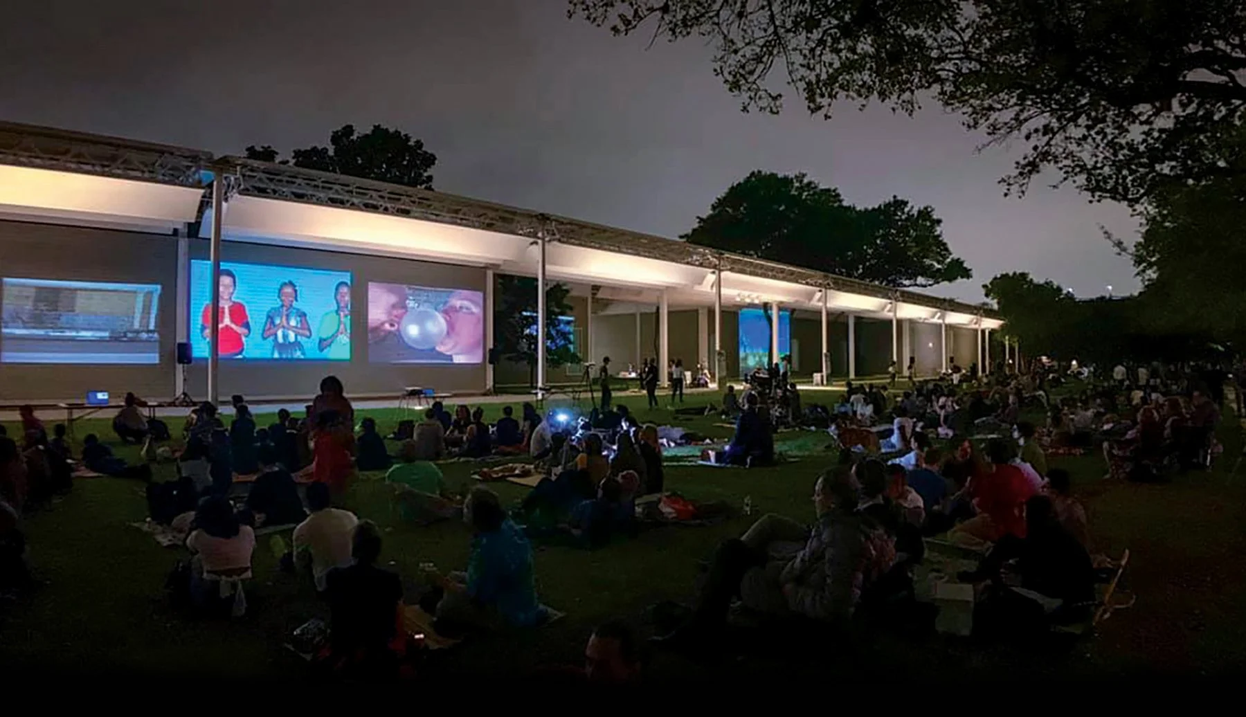 Aurora and The Menil Collection co-present this lively, annual evening of community-sourced projections covering the museum’s façade. Originally inspired by artist Rafaël Rozendaal’s Berlin events and the spread of global BYOB gatherings, this free outdoor event has become a Houston tradition for creative participants and picnicking audiences alike for over a decade. Those wishing to contribute videos and imagery to this living mosaic can sign up to participate here (first come, first served). We encourage attendees to bring their own blankets, chairs, snacks, etc.